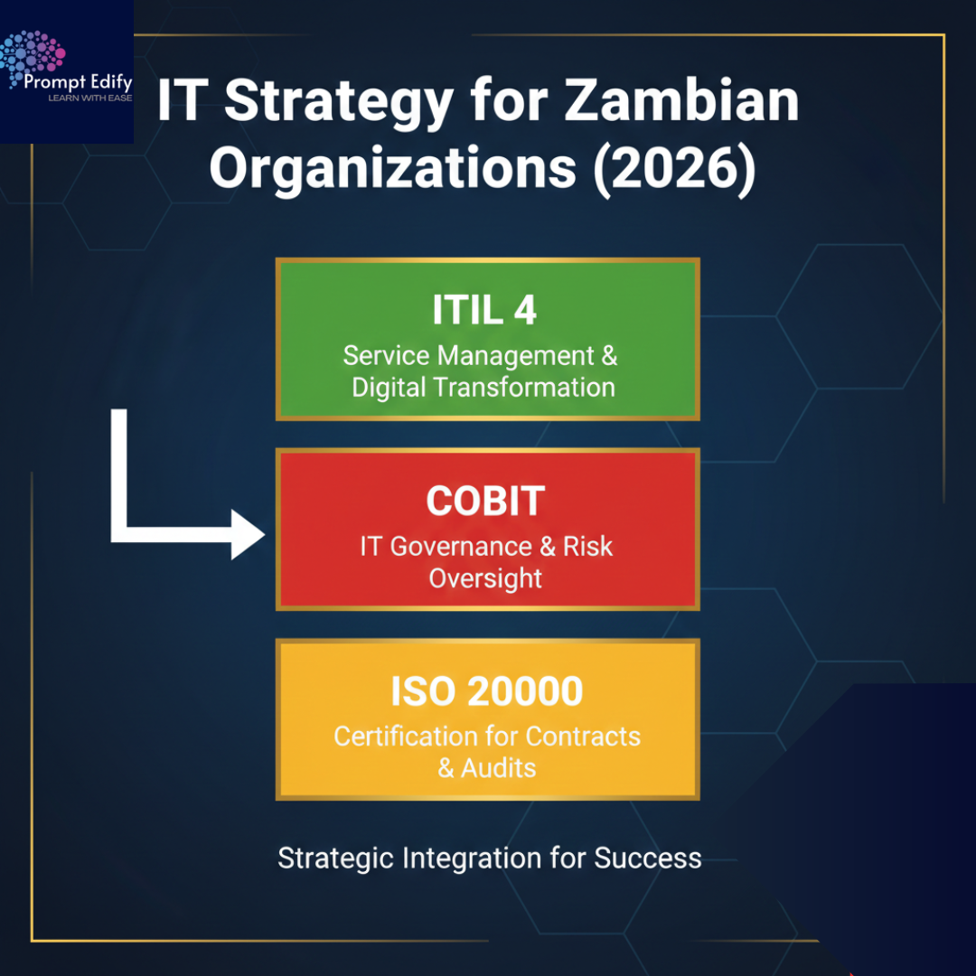 For most Zambian organizations, the choice is not “ITIL vs COBIT vs ISO 20000” but how to use them together strategically.