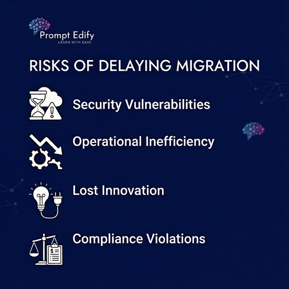 By not transitioning promptly, organizations may also face issues with efficiency and integration of their operations with current technology.