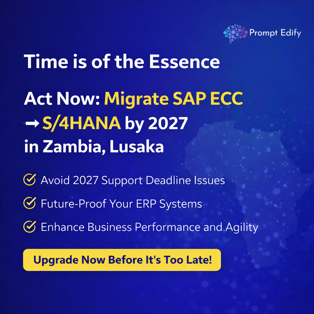 The digital transformation of business companies presents a critical choice: upgrade their business information systems or become obsolete in how they operate. The clock has begun to count down for businesses in Zambia, specifically in Lusaka (the economic centre of Zambia), as there is a new level of urgency around migrating their existing SAP solutions from ECC (Enterprise Central Component) to S/4HANA by the SAP-stipulated deadline of 2027 (when mainline support will be terminated). As a result, businesses still using legacy SAP products must develop a comprehensive SAP S/4HANA Migration and SAP S/4HANA Migration Strategy to compete successfully in both domestic and worldwide markets after SAP terminates the support of ECC.